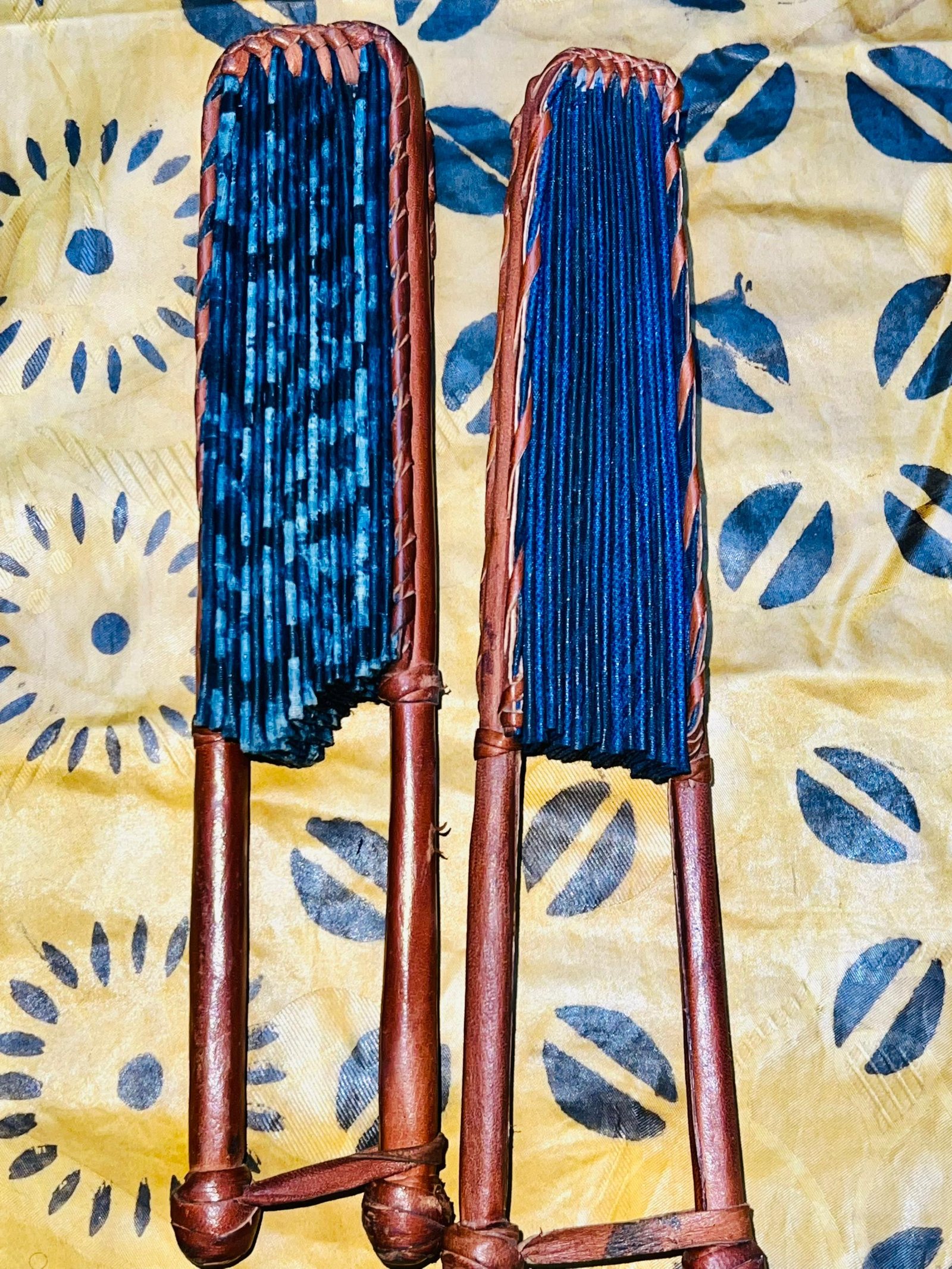 Eventails avec différents motifs et les manches en cuir 100%