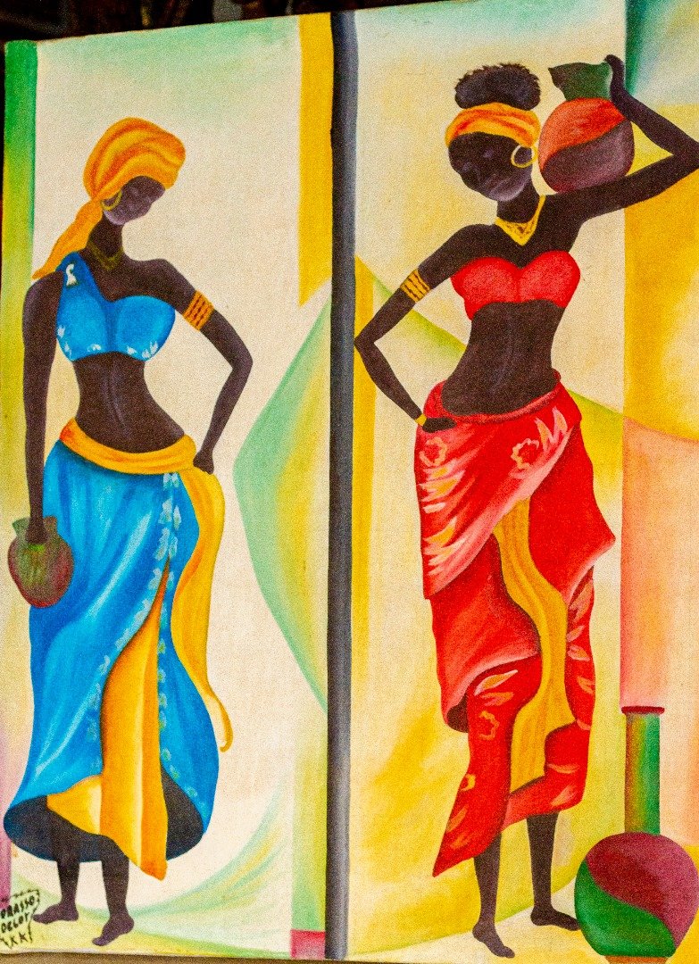 Tableau en filiforme représentant les femmes africaines en activité Prix 250.000 GNF/Unité